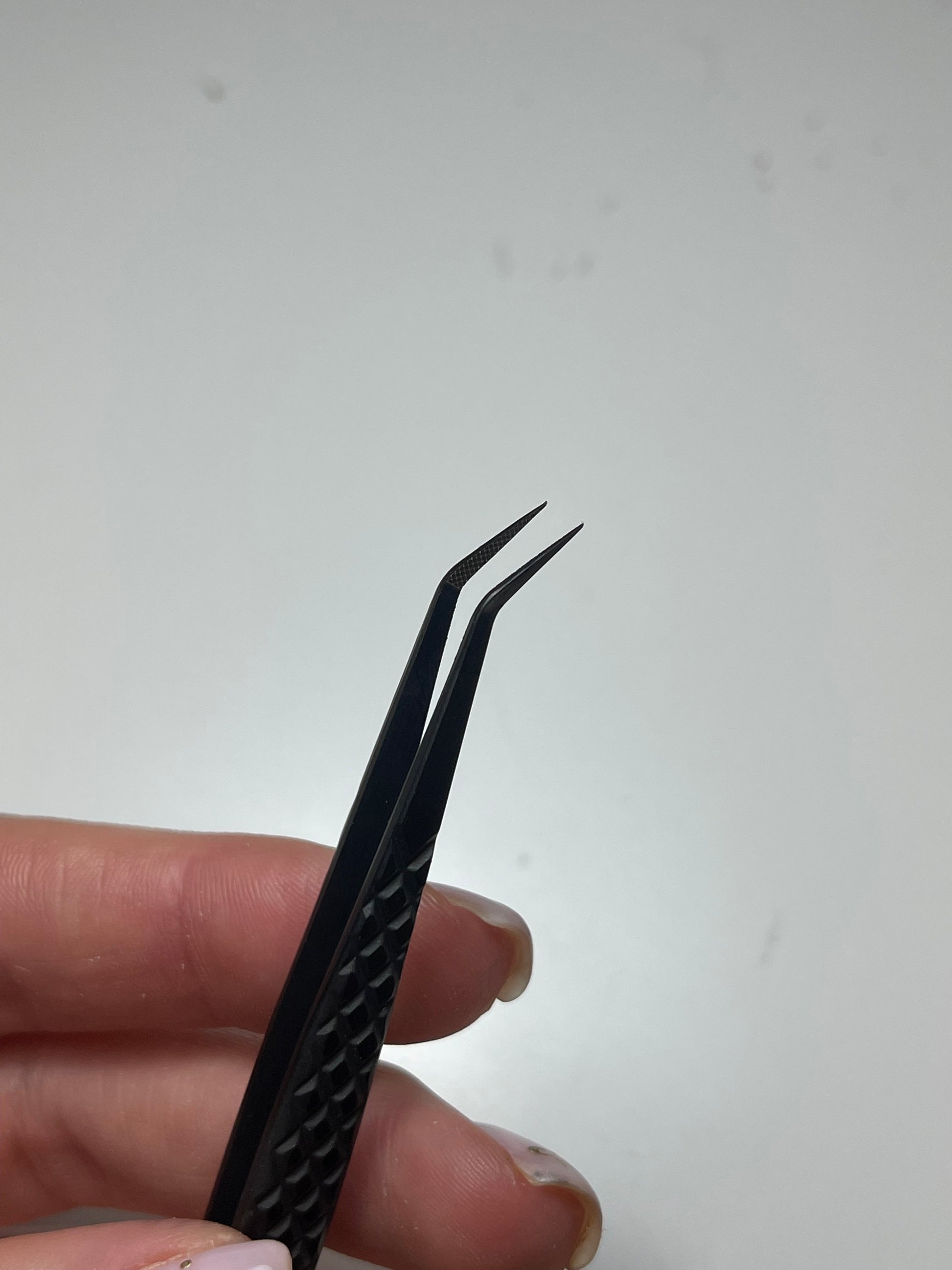 the highest quality tweezer with perfect grip for removing out grown lashes and sharp with precision for perfect isolation . With our logo engraved.